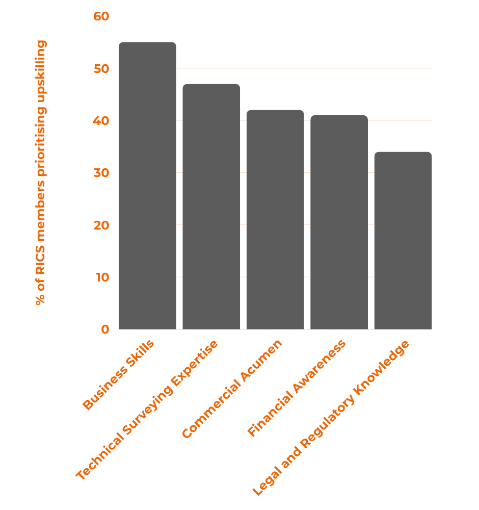 Whilst attracting new talent is critical, 45% of survey respondents emphasised that upskilling existing surveyors is equally important for addressing capacity constraints.